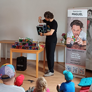 Am Nachmittag ließen wir uns noch von einem Magier etwas aus dem Hut zaubern, bevor wir dem alten Gemäuer und den hier arbeitenden Menschen Gottes Segen zusprachen. Mit Unterstützung der Freiwilligen Feuerwehr und einer ihrer Doppelhub-Pumpen nahmen die Kinder diese wichtige Aufgabe sehr ernst und spritzten das segnende Wasser bis auf‘s Dach.